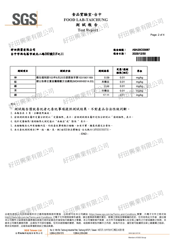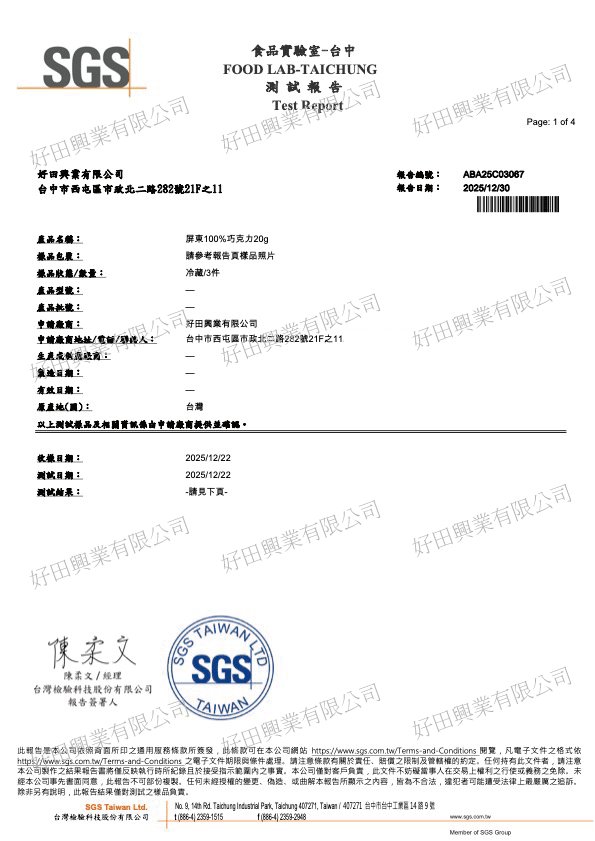 檢驗單位:台中SGS食品實驗室